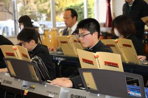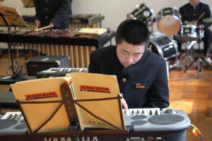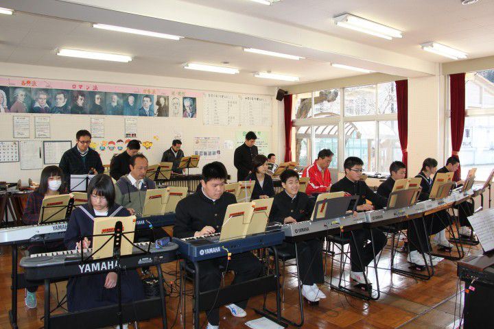 今年度最後の全音 2017/02/23 2月23日(木),選択教科「全校音楽」の最終日。今までの活動を振り返りながらの楽しい「オブラディ・オブラダ」になりました。 3年生に託された1・2年生,来年度も笑顔になれる演奏を。