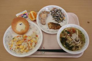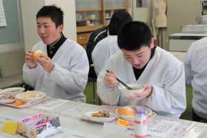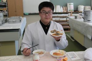 3月3日(金),今日の給食は卒業バイキングでした。『行事食』をテーマに3年生のリクエストである鯖の味噌煮や太陽の恵み汁が入った献立でした。みんなが大好きなタバスキーが乗ったパンもあり、生徒たちは大喜びでした!!