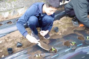 大豆が育ち、姿を変えていく過程を生徒たちは目の当たりにしています。