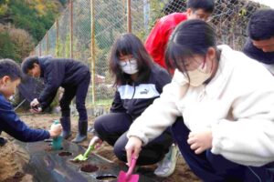 大豆が育ち、姿を変えていく過程を生徒たちは目の当たりにしています。