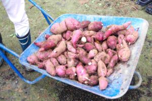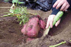 初夏にサツマイモの苗を植えましたが、見事に土の中で大きく育ちました!