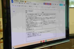当日はICT機器を活用し、生徒がリアルタイムで意見を書きこんだり、