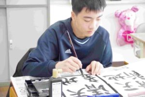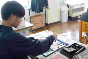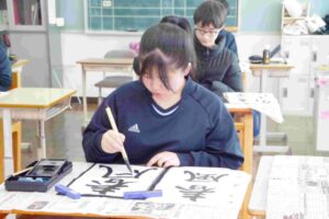 書き初め大会では、集中して各学年の課題に取り組みました。