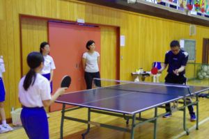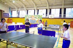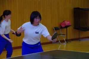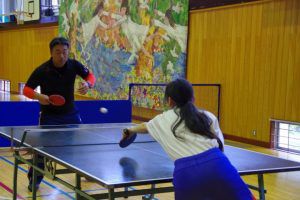 全校登山が終わり,総体に向けて本格的に部活動の練習が始まりました。1年生は卓球を始めてまだ2ヶ月ですが、試合形式の練習をしていたり、審判をしていたりと様になっています。カットサーブを使えるようになってきました。2・3年生は動きが速く、力強いスマッシュもあり、さすが先輩という感じでした。