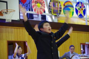部活動が始まる前に、3年生にサプライズで壮行会が行われました。学生服で力強く応援をする姿は本当にかっこよく。応援の中で3年生の一人一人の名前が呼ばれる場面では、3人が照れ笑いをしていて、とても嬉しそうに見えました。勝つことへの気持ち作りは十分にできたと思います。