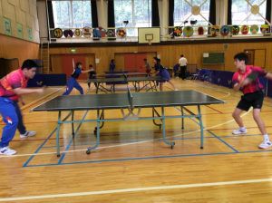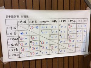 男子リーグ戦では、1回戦敗退がM・R君、H・T君。突破がT・R君、A・Y君、M・H君。