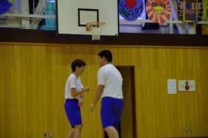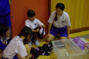 6月13日(火)、雨が少し降っていたため、体育館での練習となりました。基礎トレーニングでは、ペアを組んでお互いに励まし合って行っていました。その後は体育館を分割し、男子は鬼ごっこ5分1セット、女子はリレーのバトンパスの練習を行っていました。最後に、ユニフォームとスパイクを選びました☆